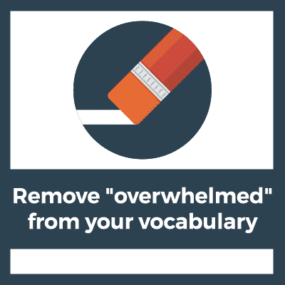 Those words “overwhelmed,” “being stuck,” and “frustrated” need to be cut out of your vocabulary.